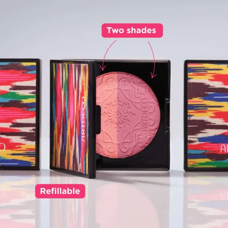 La texture douce et veloutée du Blush Couture d'ARTDECO s'applique et s'estompe facilement. Il procure ainsi une sensation agréable sur la peau. Il contient deux couleurs parfaitement assorties qui peuvent être mélangées pour obtenir la teinte optimale. Appliquées séparément, elle vous assurent aussi le look parfait ! La libération immédiate de la couleur facilite l'application.