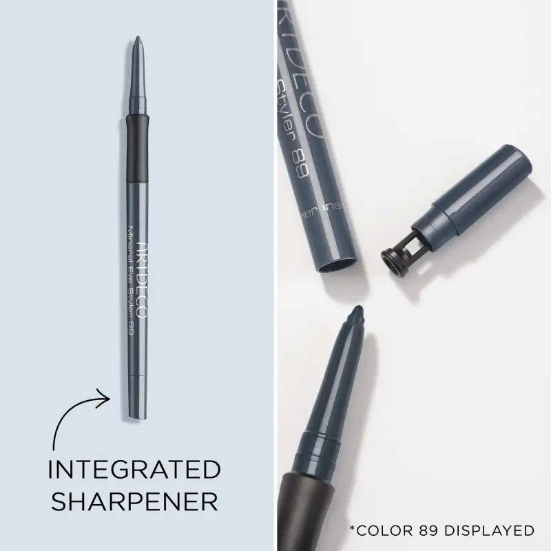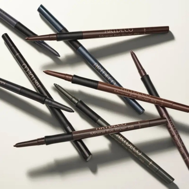 Pour parfaire votre maquillage des yeux, il y'a le Mineral Eye Styler en raison de sa mécanique innovante. Une application de couleur uniforme et précise. Sa formule spécifiquement développée le rend extrêmement durable et indélébile et est adaptée aux yeux sensibles. Le Mineral Eye Styler est sans conservateurs, sans parfum et sans huiles minérales. Il peut également être estompé directement après l'application et se caractérise par une bonne intensité de couleur. Le Mineral Eye Styler a un taille-crayon intégré et la pointe est complètement rétractable, il est donc parfait pour voyager